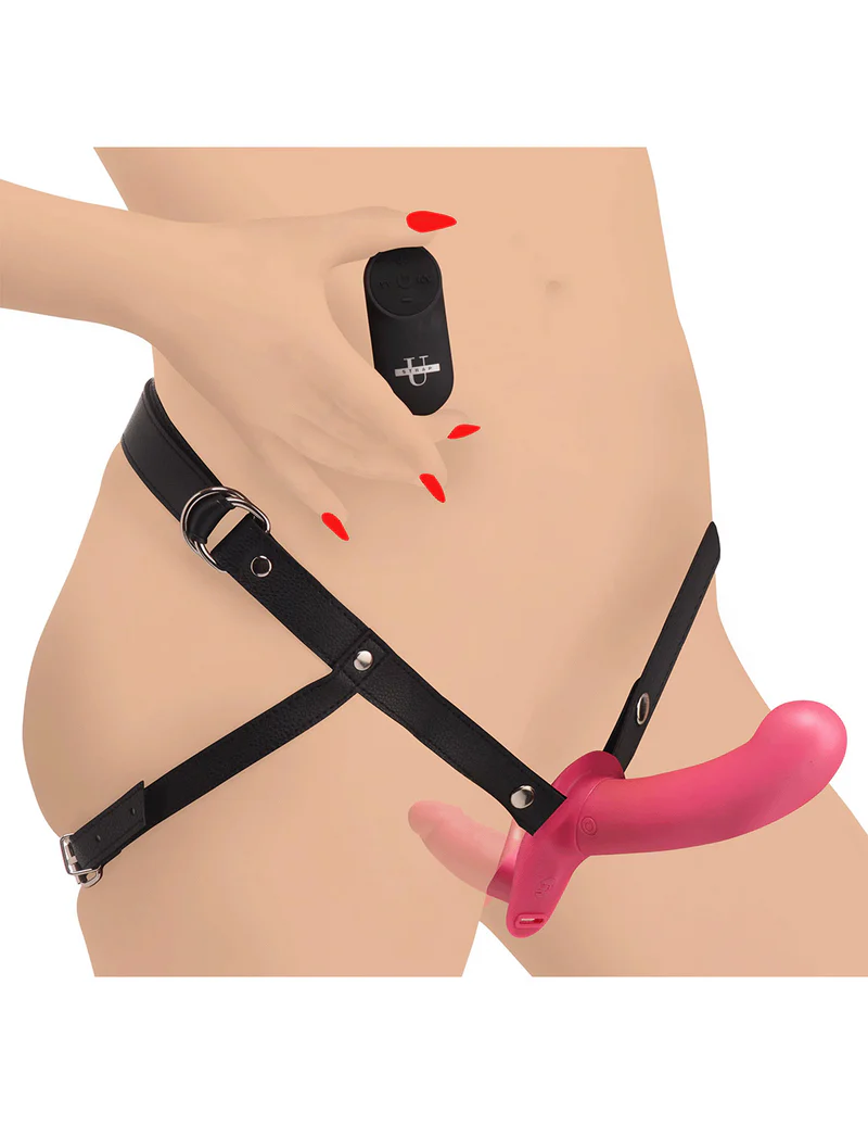 Double the dildos, double the vibes, this strap-on shares everything but control. The 28X Double Diva 1.5in Remote Control Strap On Set is crafted for couples who love to give and receive. Whether switching roles or syncing sensations, this clever design delivers penetration and fullness in one seamless experience. Each silky silicone dildo boasts 4 speeds and 7 pulse patterns, all easily controlled with a sleek, hands-free remote that works from up to 32 feet away. The smaller, curved shaft zeroes in on the G-spot, while the larger piece is sculpted to satisfy your partner deeply. Paired with a durable PU leather harness that adjusts at the waist and thighs, itβs built to move with your rhythmβand keep the connection pulsing.