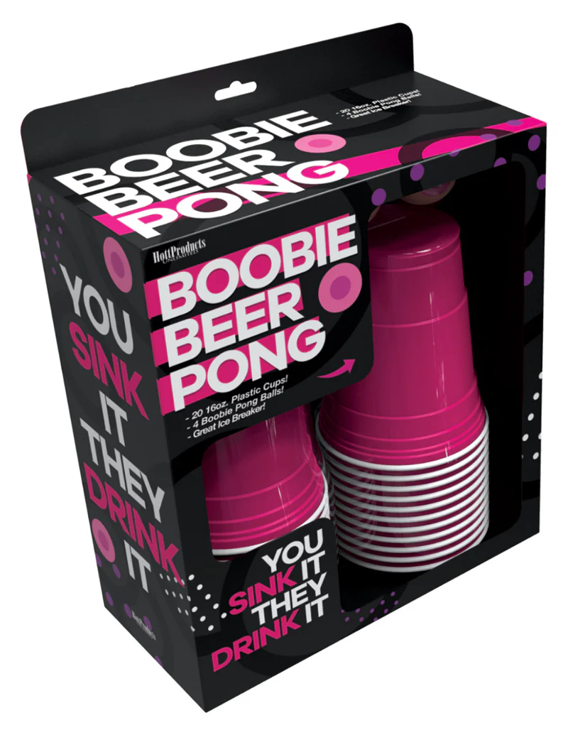 Play a boobie themed game of beer pong with the Boobie Beer Pong Set. This Set comes with 4 boobie designed ping pong balls and 20 16 ounce cups. The cups are pink and adds a splash of color to your party. Your guests will love the adult themed beer pong set. Purchase this set for your next hangout, bachelor/bachelorette party, or adult birthday party.