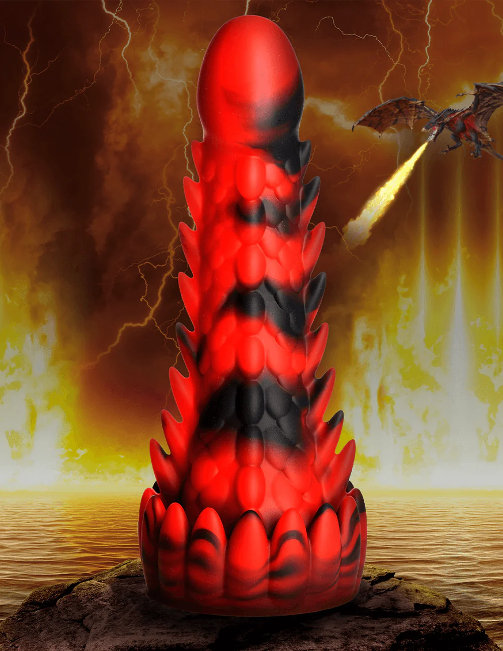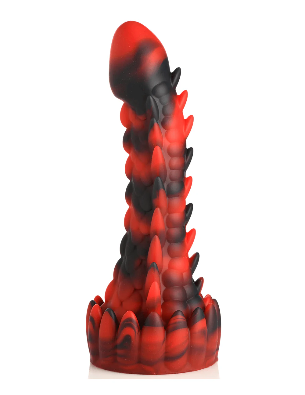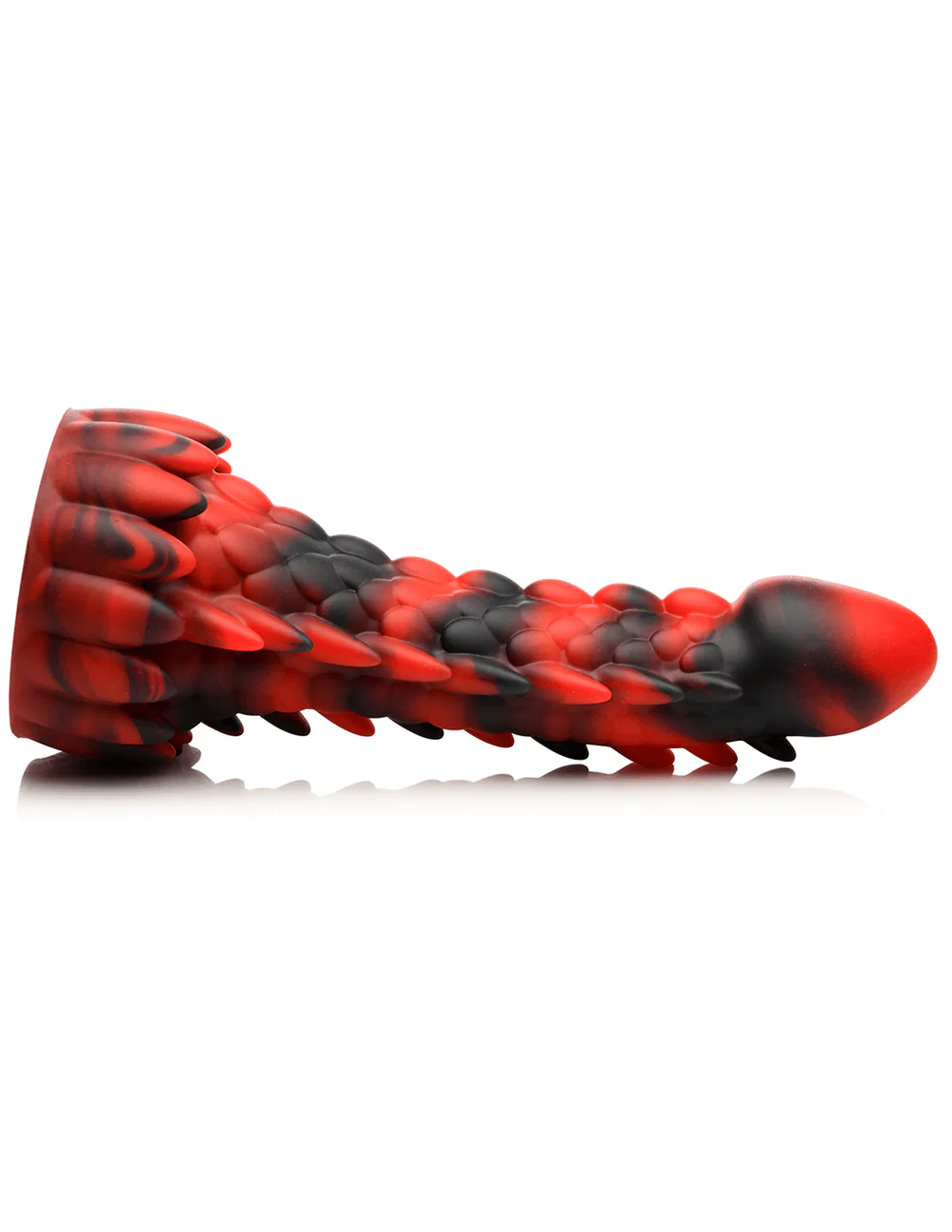 Summon the ultimate pleasure with the Demon Rising Scaly Dragon Dildo!. This daring dragon features a long, lean shaft with smooth head and stimulating bumps and spikes. Crafted from premium silicone, it invites safe and sensual exploration. And with a strong suction cup base, you're ready to take a wild ride with no hands! Let the dragon soar and experience pleasure like never before!