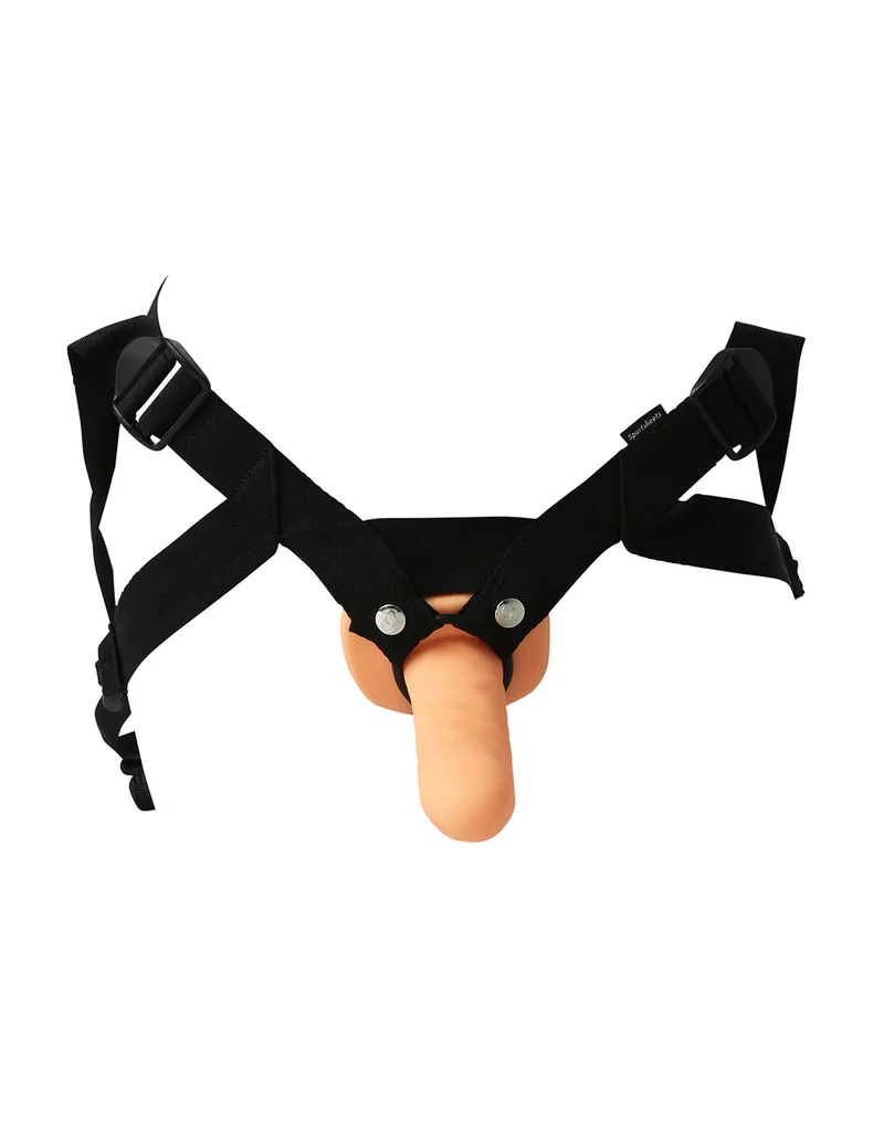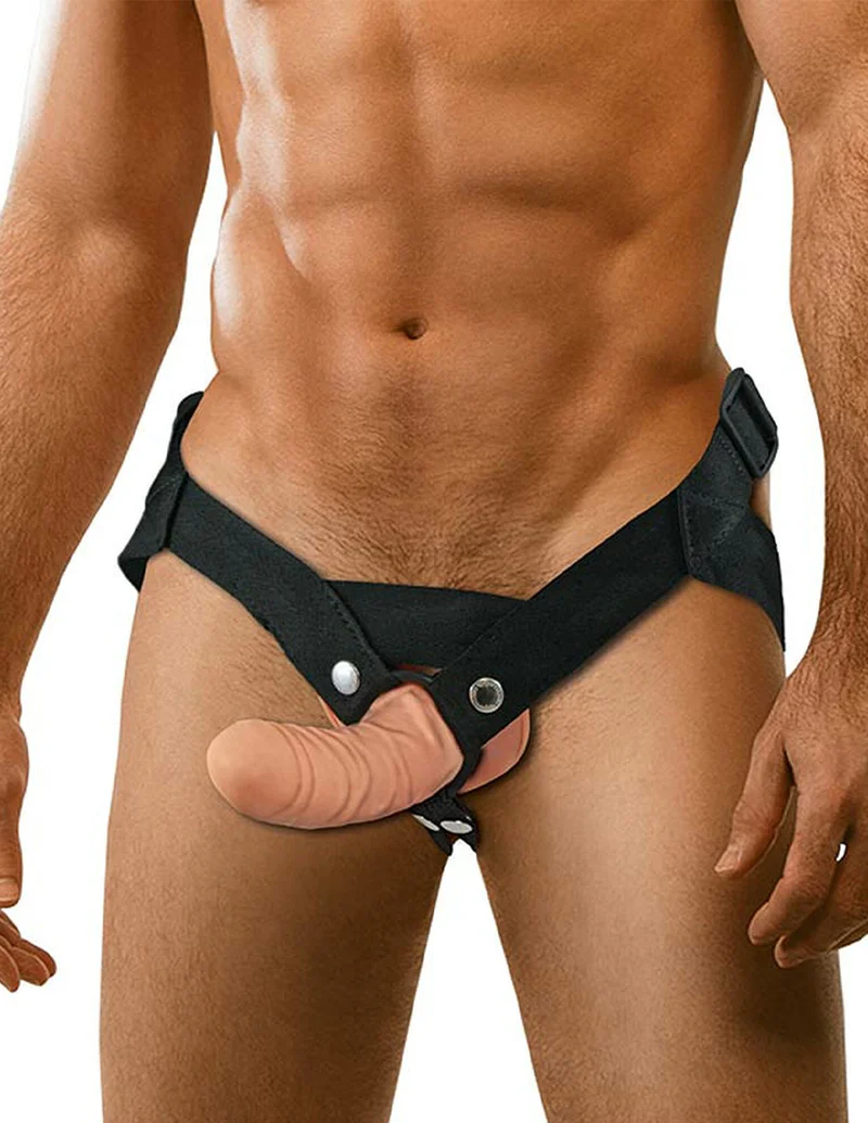 This hollow strap on is comfortable for both the wearer and receiver. The harness has thick durable straps that keeps the hollow dildo in place. The straps fit snugly to prevent chafing. This harness was designed for all individuals, especially those who have lost function due to injury or paralysis. Use water based lube on the interior and exterior for best results.