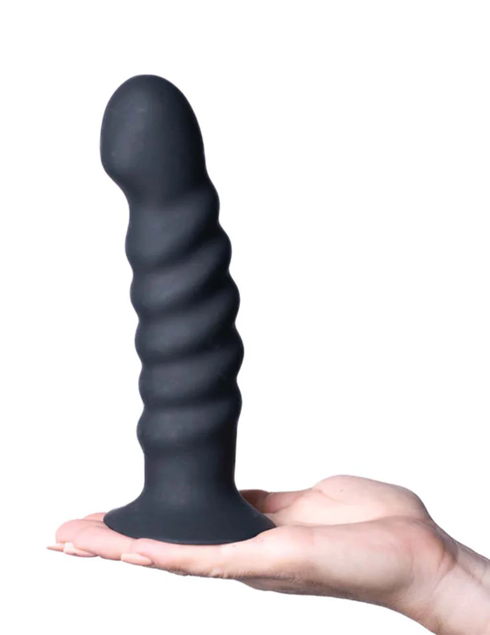 Kendall by Maia is a curved, ribbed, suction cup dildo. This dildo is 7.8 inches long and 1.5 inches wide. It is made of smooth medical grade silicone. It is non-porous and very hygienic. This dildo is harness compatible. Its ribbed texture will massage your inner walls as it is thrust in and out. Its curved head is perfect for stimulating the G-spot or prostate. Use plenty of water based lubricant.