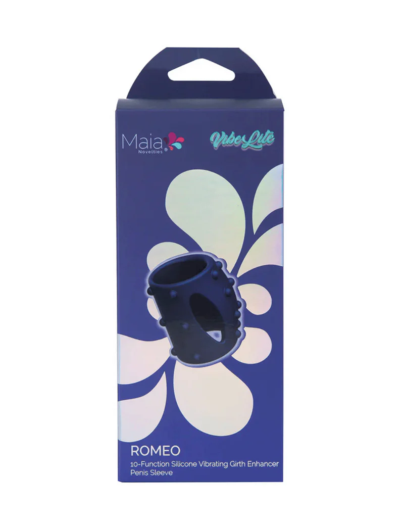 Your new favorite leading man has arrived. Say hello to Romeo, the star performer from Maiaβs VibeLite collection, here to turn every encounter into a standing ovation. This 2-inch vibrating girth enhancer combines 3 steady speeds and 7 pulse patterns for a total of 10 thrilling functions of pleasure power. Made from premium silicone, its snug 1-1/8-inch interior adds up to 3/8 inch in girth because a little extra goes a long way. Fully submersible and rechargeable via magnetic cable, Romeo is ready for passionate play in or out of the water.