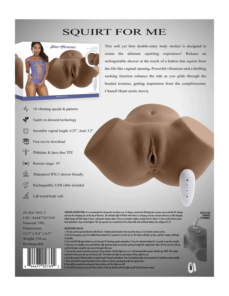 Push the button and let things get a littleβ¦ messy. Turn up the intensity with the Squirt For Me Double-Entry Body Stroker, designed to deliver a bold, immersive experience. Its soft yet firm construction and lifelike design create a realistic feel, while textured interiors add extra stimulation with every movement. The built-in squirting function brings a playful, interactive element at the touch of a button. With 10 vibration speeds and patterns, you can easily switch from teasing to intense. The dual-entry design offers versatility, and the included remote lets you stay in control or hand it off for added excitement. Waterproof, rechargeable, and body-safe, itβs built for unforgettable sessions.