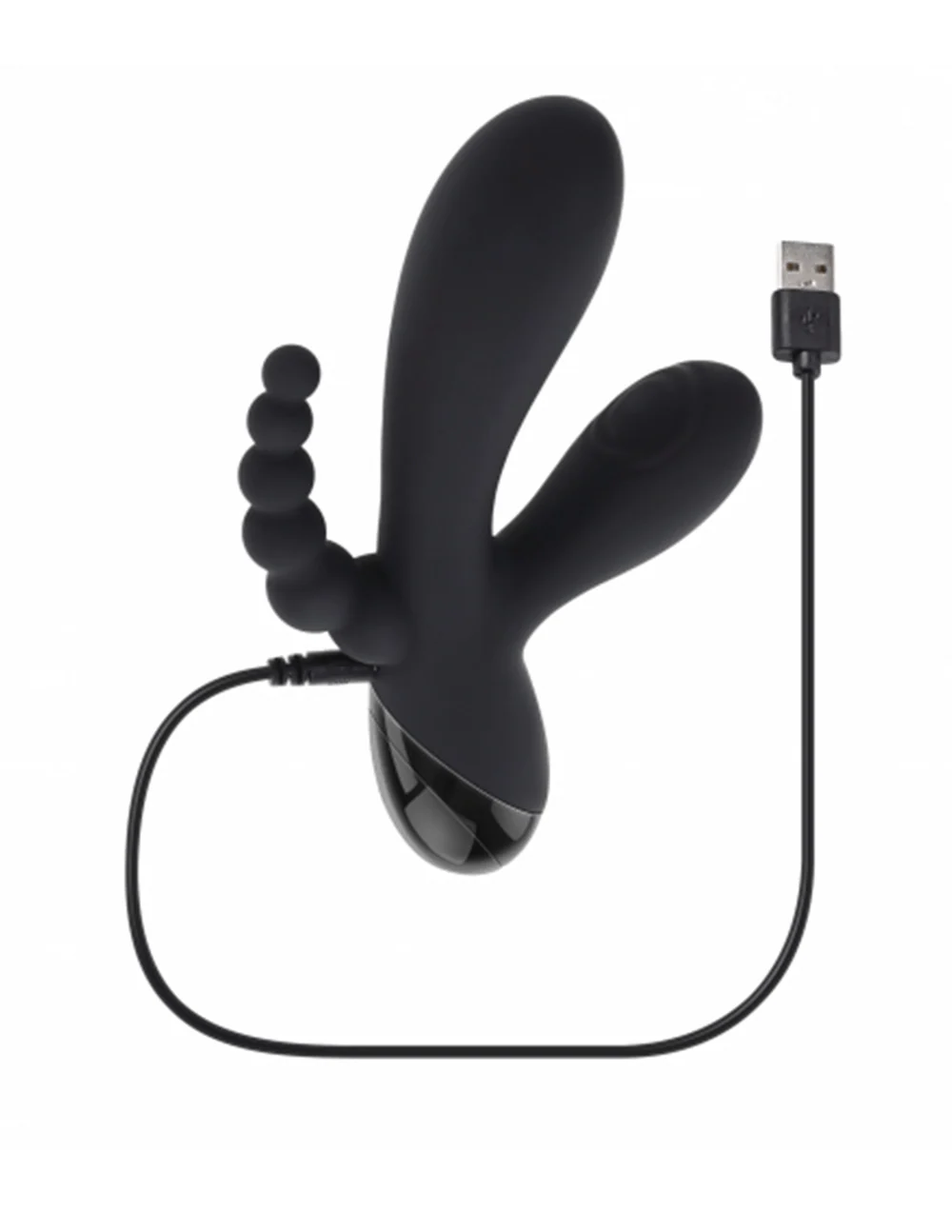 Because why settle for one ace when you can have all three? Meet the Triple Aces, the triple-threat vibe that plays dirty and always wins the game. Its silky silicone body delivers deep, rumbly vibrations paired with teasing taps that hit all the right spots at once. With dual stimulation and a beaded third arm, this toy knows exactly how to multitask your pleasure. Waterproof design lets you take the fun from the bedroom to the bath without missing a beat. USB rechargeability keeps the power strong and the sessions long.