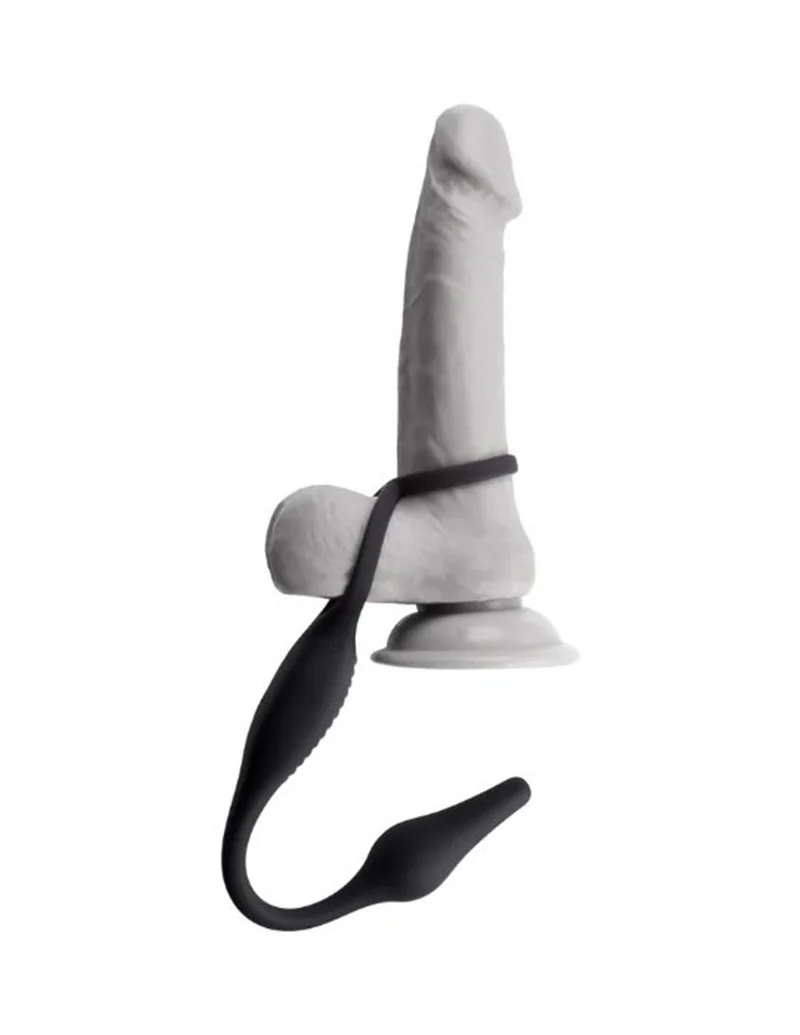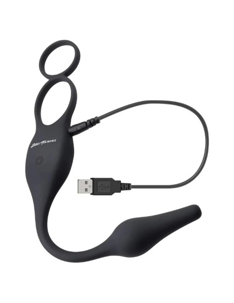 Prepare for the ultimate pleasure ride with the Zero Tolerance Plug & Tug Silicone Rechargeable Vibrating Cock Ring & Combination Butt Plug. This fearless product is not for the faint of heart - it's for the daring and adventurous. Imagine this: a vibrating plug and a penis ring teaming up to give you twice the thrill. Made of stretchy silicone, this powerful combination consists of two rings that securely hold your shaft and balls in place while the flexible plug adds a whole new level of excitement to your playtime. And there's more - the linked cord serves a purpose, tantalizing your prostate while you please your partner, unleashing levels of satisfaction you never thought possible. With 7 customizable vibrating speeds and patterns, fueled by not one, but two motors, you have complete control over your pleasure journey. And no need to worry about safety - this toy is made with phthalate and latex-free silicone, so you can focus on the fun without any concerns.